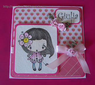 La carta è sempre DCWV "The sweet matstack", il nome l'ho scritto al computer, roselline, nastro, tutto sul rosa e fucsia.....